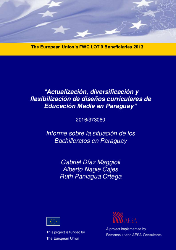 El presente informe constituye el segundo entregable del resultado 1 del proyecto “Actualización, diversificación y flexibilización de diseños curriculares de Educación Media de Paraguay” el cual se enmarca en la cooperación general de la Unión Europea con Paraguay en el sector de educación plasmada en el Programa Plurianual 2014-2020.