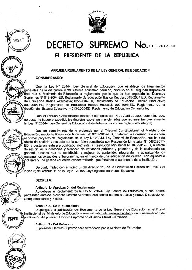 Decreto supremo N° 011-2012-ED :