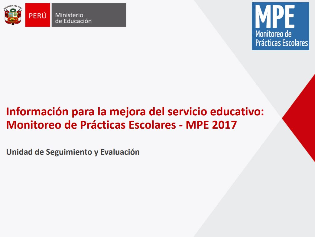 El MPE es una herramienta que se desarrolla desde el 2016 en el marco del Artículo N° 40 del ROF del MINEDU, donde se indica que la Unidad de Seguimiento y Evaluación (USE) es responsable de efectuar el seguimiento y evaluación del impacto y desempeño de las intervenciones de la política educativa. Entre sus funciones se encuentra diseñar, conducir e implementar las herramientas impulsadas por la SPE para el seguimiento del desempeño y evaluación de las intervenciones de la política educativa, en coordinación con los órganos pertinentes, y promover el uso de la evidencia generada por las acciones de seguimiento y evaluación lideradas por el MINEDU, así como por otras entidades u organizaciones públicas o privadas, para la mejora de la eficiencia y eficacia de las intervenciones de la política educativa.